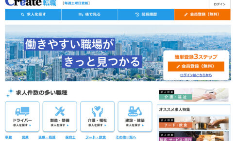 「クリエイト転職」は、株式会社クリエイトが運営する正社員求人情報に特化した転職サイトです。地域密着型の求人情報を提供し、求職者の多様なニーズに応えています。 主…