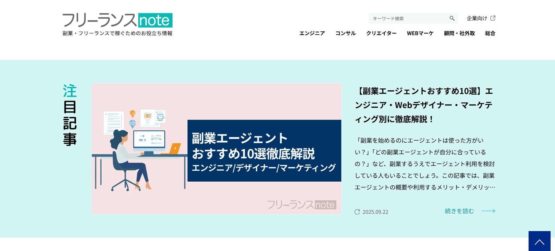アークワードコンサルティング株式会社が運営する「フリーランスnote」は、副業やフリーランスとして働く個人向けに、実践的で役立つ情報を発信するWebメディアです。