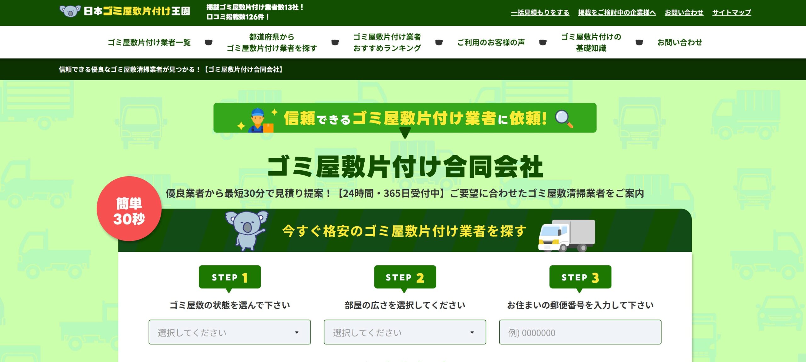 ゴミ屋敷片付け合同会社が運営する日本ゴミ屋敷片付け王園は、不用品回収・片付け業者を比較できる全国規模の情報サイトです。