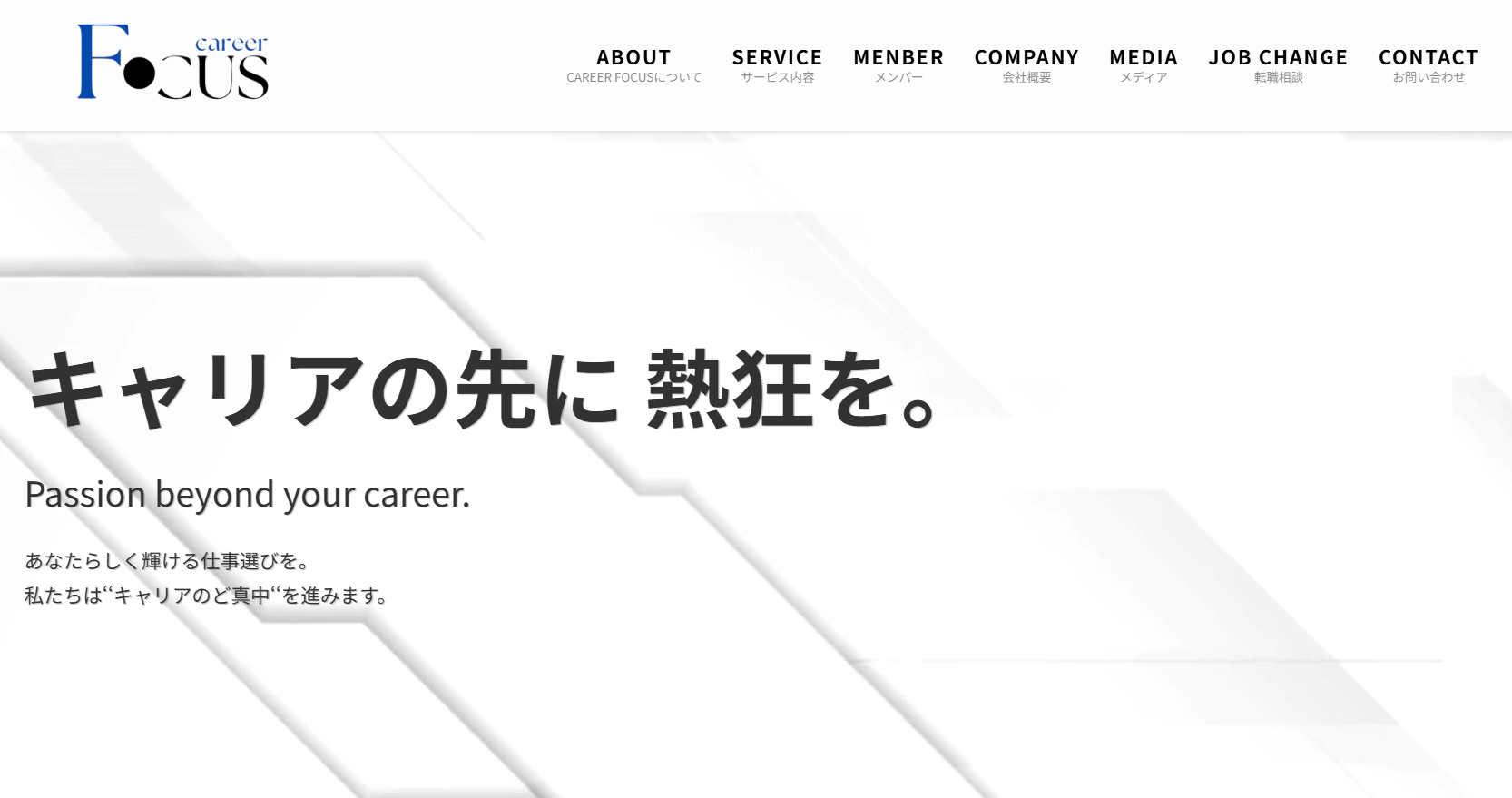 CAREER FOCUSとは、「キャリアの先に熱狂を。」をビジョンに20代若手層の転職支援を行っており、これまでに約2000名の方のキャリアに貢献しました。 YouTubeチャンネル(攻めキャリ)の運営や、RPO事業において上場企業から大手ベンチャー、中小企業まで幅広く採用支援も行っております。