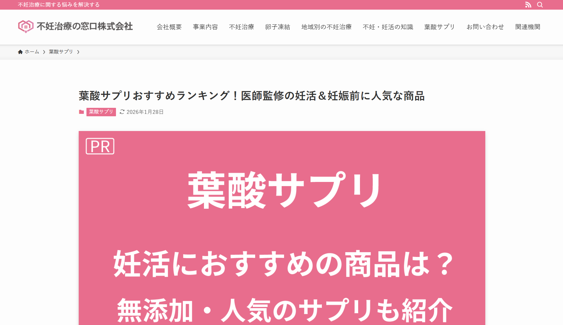 不妊治療の窓口株式会社が運営する「葉酸サプリおすすめランキング」は、妊活中の方が葉酸サプリを検討する際に役立つ基礎知識や選び方を分かりやすくまとめた情報サイトです。 不妊治療分野で培ってきた知見を背景に、葉酸の摂取量の考え方や成分面のポイントなど、判断の参考となる情報を丁寧に整理している点が特徴です。カードローンの窓口合同会社