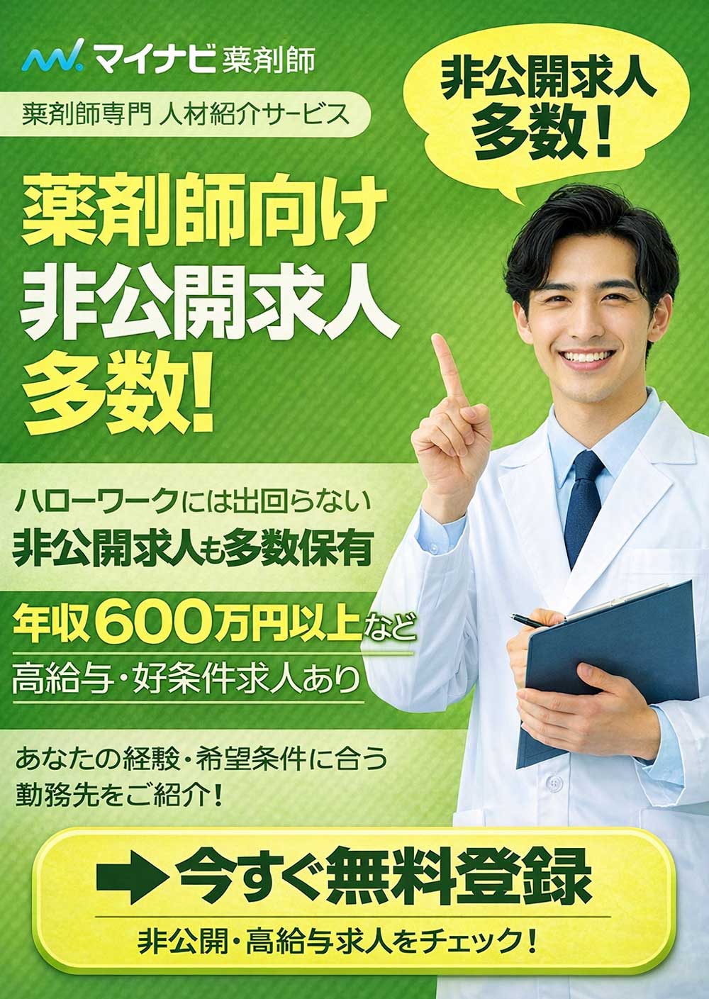 マイナビ薬剤師 年収600万円以上、無料登録で会員限定の非公開求人をご紹介!