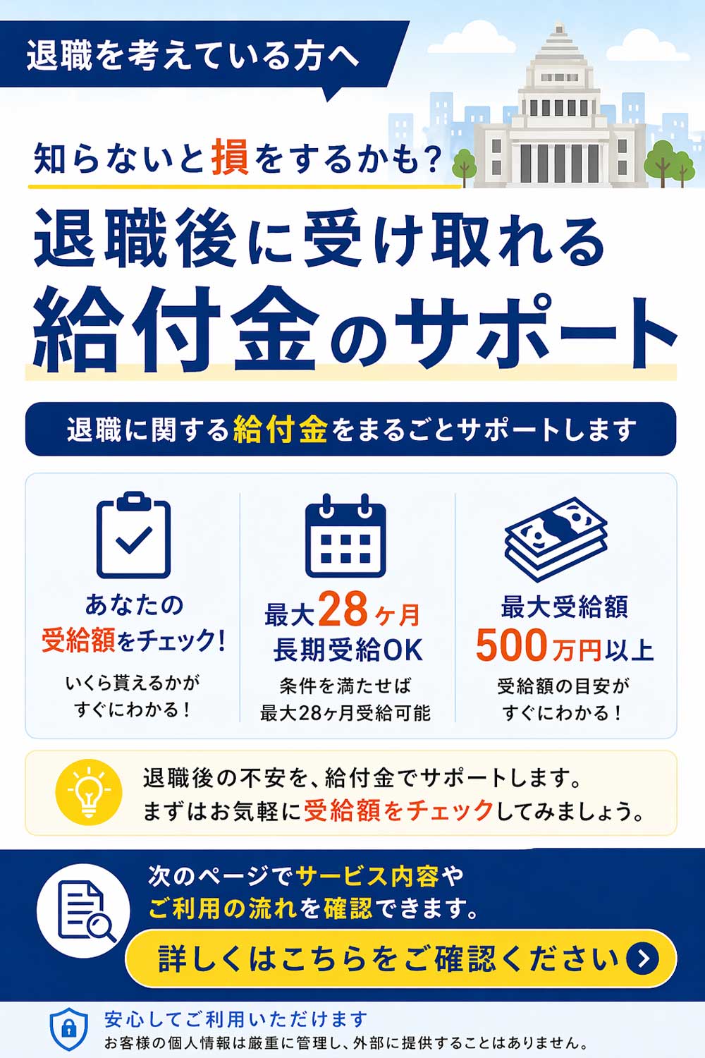 通常3ヶ月しかもらえない失業保険を社会保険を利用することによって最大28ヶ月、最大500万円延長してもらう事ができます!