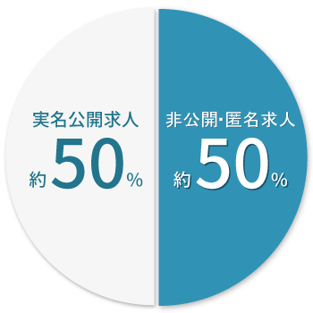 ワケあって匿名・非公開求人となっている求人の割合は全体の70%。